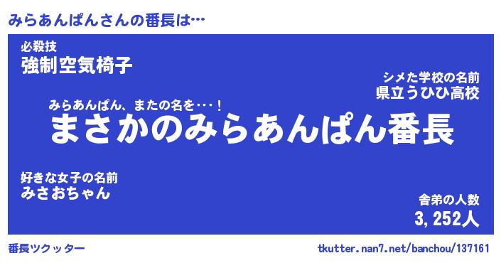 | 伝説のあだ名 | 『伝説のスナイパーみらあんぱん』 |