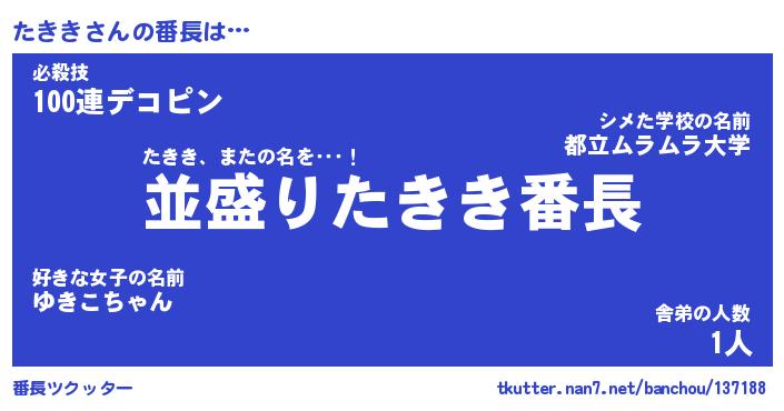 | ヒーロー風カッコイイあだ名 | 『スーパータキキ』『ウルトラたききマン』 |