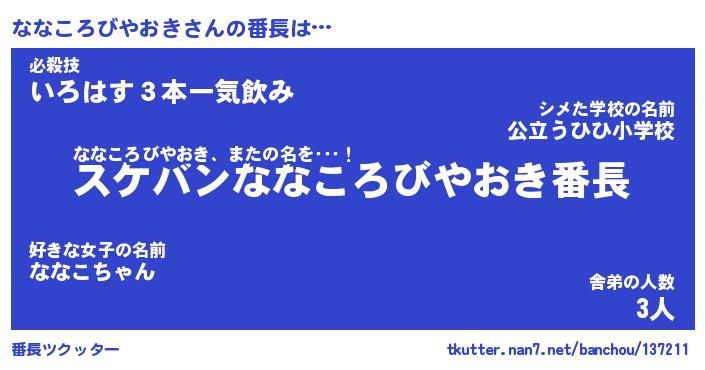 | ヘコむあだ名 | 『ななにゅー』『なまこ酢』『ななを』 |