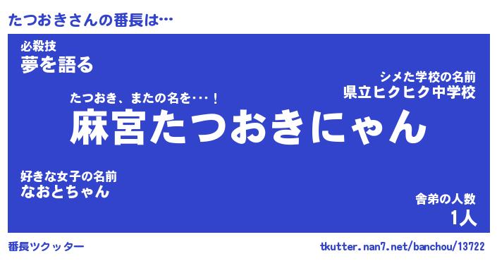 | 意味不明あだ名 | 『ペロリンたつおき』『永久保存たつおき』 |