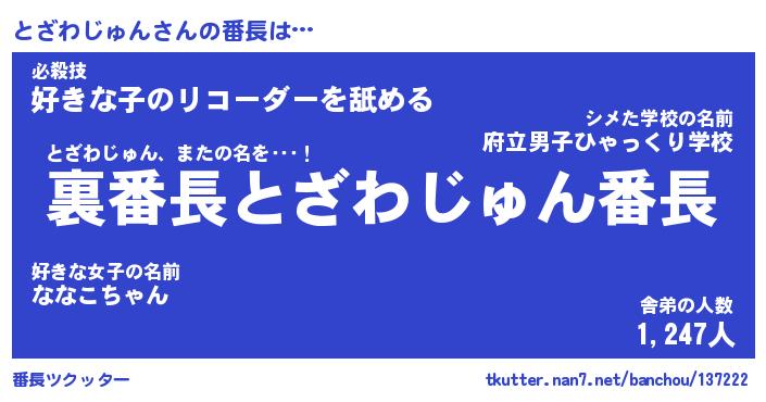 | ポケモン風あだ名 | 『トザチュウ』『トザワダネ』 |