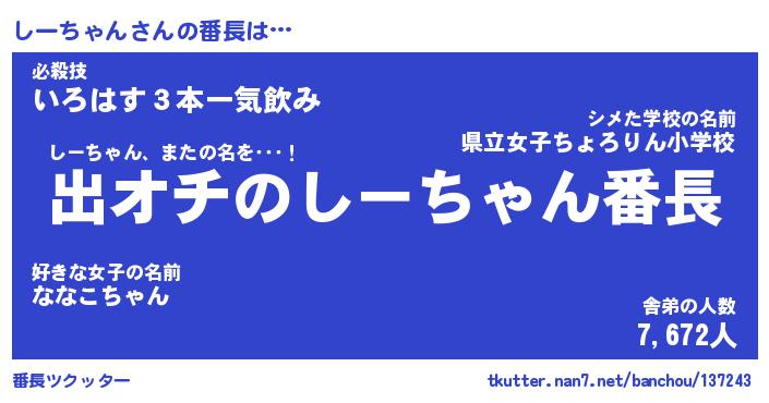 | ピコ太郎風あだ名 | 『シコ三郎』『ピシ史郎』『シー一郎』 |