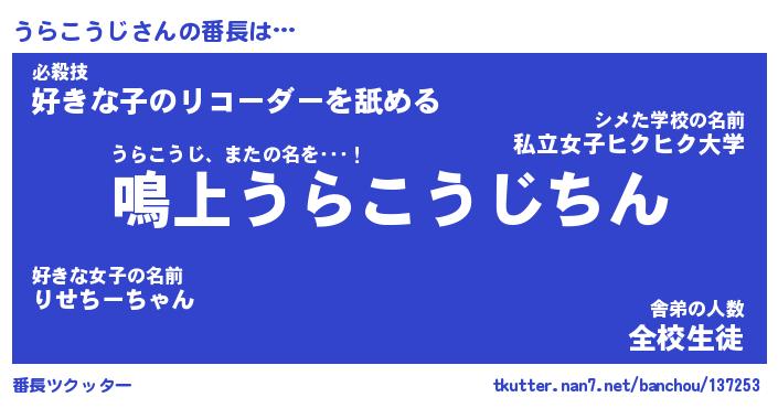 | ヒーロー風カッコイイあだ名 | 『スーパーウラコウジ』『暗黒騎士ウラ』 |