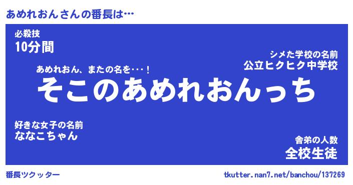 | 2回繰り返すあだ名 | 『あめあめ』『ああめめ』『おらおら』 |