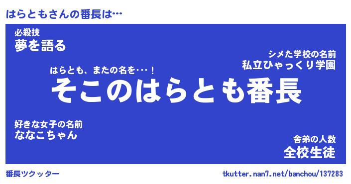 | ヒーロー風カッコイイあだ名 | 『スーパーハラトモ』『暗黒騎士ハラ』 |