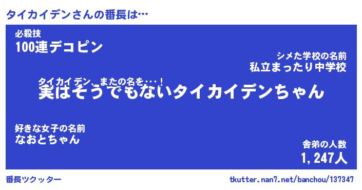 | ポケモン風あだ名 | 『タイチュウ』『タイカダネ』 |