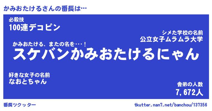 | 意味不明あだ名 | 『ペロリンかみおたける』 |