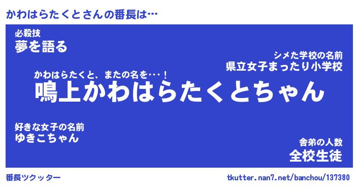 | ヒーロー風カッコイイあだ名 | 『スーパーカワハラタクト』 |