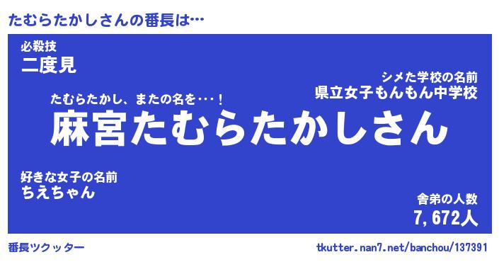 | 2回繰り返すあだ名 | 『たむたむ』『たたむむ』『ぬるぬる』 |