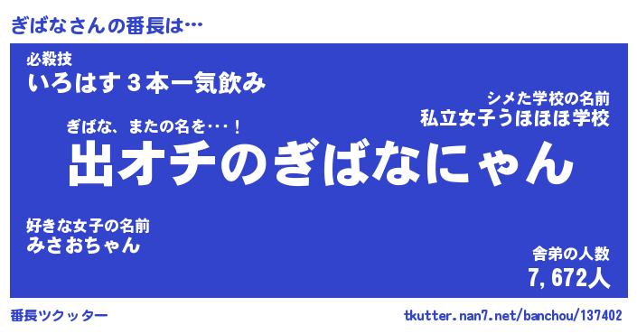 | 意味不明あだ名 | 『ペロリンぎばな』『ぎばなフォーエバー』 |