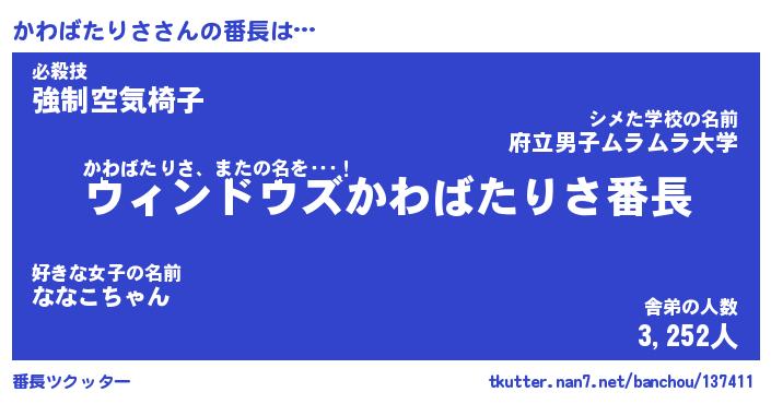 | 肩書あだ名 | 『かわばたりさ社長』『かわばたりさ先生』 |