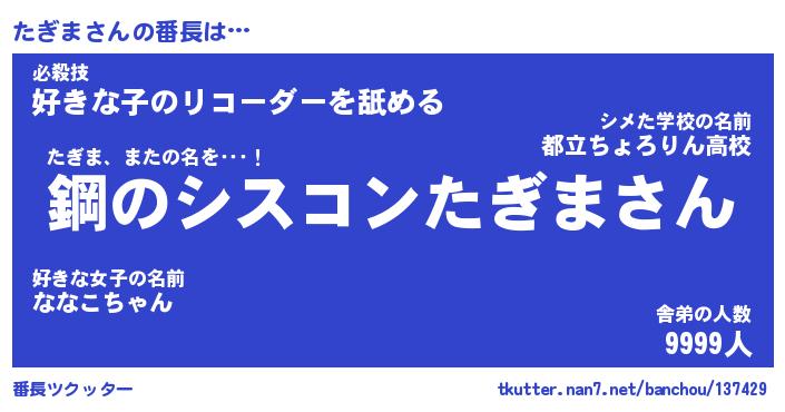 | ヘコむあだ名 | 『たぎにー』『酢こんぶ』『たぎ太郎』 |