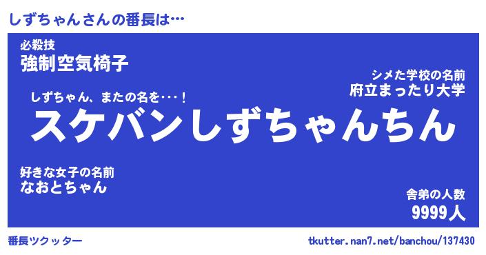 | ファンタジー風あだ名 | 『シズフェル』『エターナルシズチャンー』 |