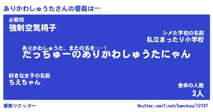 | 肩書あだ名 | 『ありかわしゅうた社長』 |