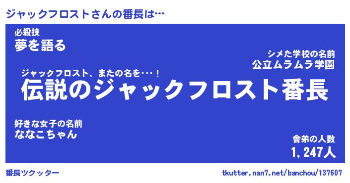 | 肩書あだ名 | 『ジャックフロスト社長』 |