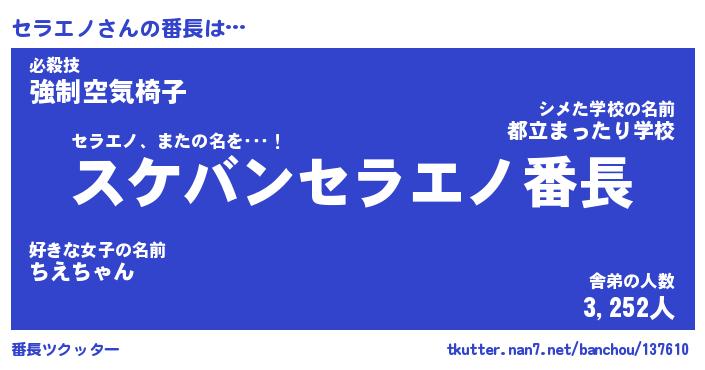 | ピコ太郎風あだ名 | 『セコ八郎』『ピセ次郎』『セラ五郎』 |