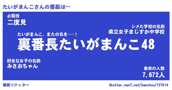 | 肩書あだ名 | 『たいがまんこ御曹司』 |