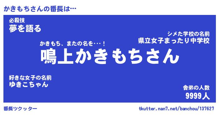 | 意味不明あだ名 | 『ペロリンかきもち』『永久保存かきもち』 |