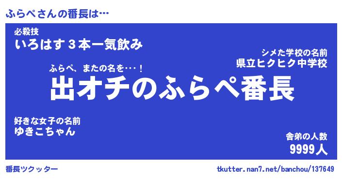 | 肩書あだ名 | 『ふらぺ店長』『ふらぺ総理大臣』 |