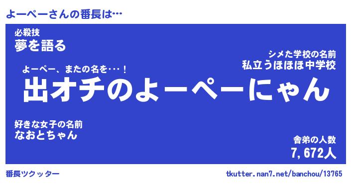 | 意味不明あだ名 | 『ペロリンよーぺー』『永久保存よーぺー』 |