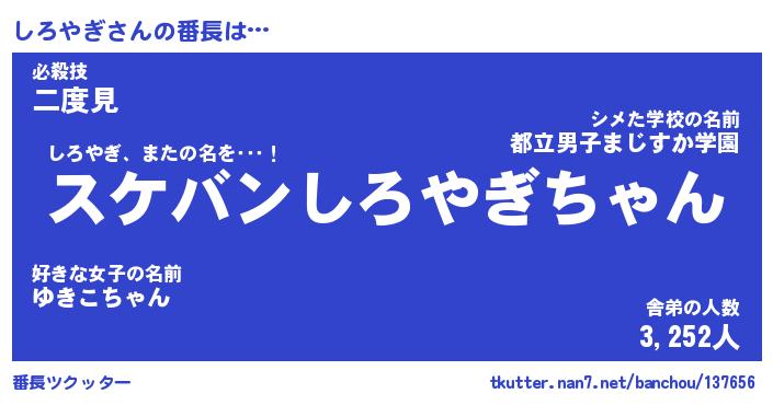 | 意味不明あだ名 | 『ペロリンしろやぎ』『永久保存しろやぎ』 |