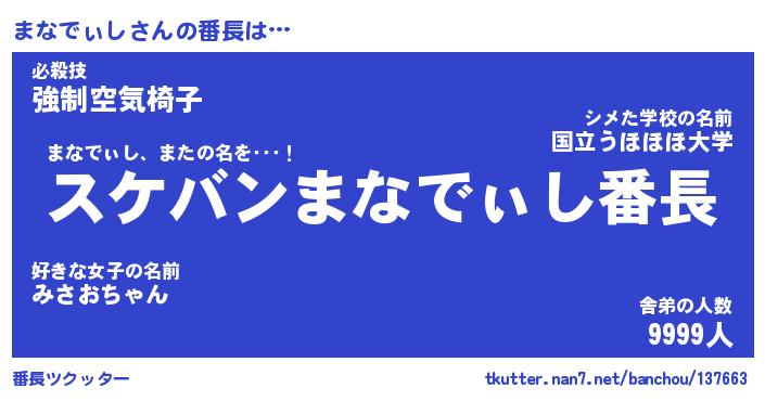 | 伝説のあだ名 | 『不死鳥の竜騎士まなでぃし』 |