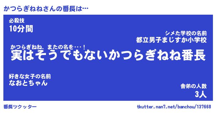 | 2回繰り返すあだ名 | 『かつかつ』『かかつつ』『なあなあ』 |