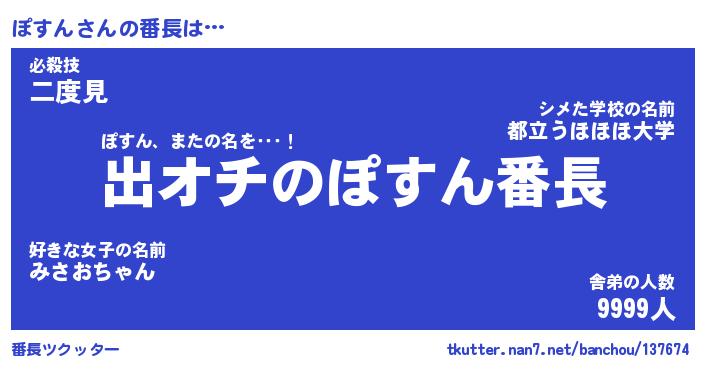 | ヒーロー風カッコイイあだ名 | 『スーパーポスン』『ウルトラぽすんマン』 |