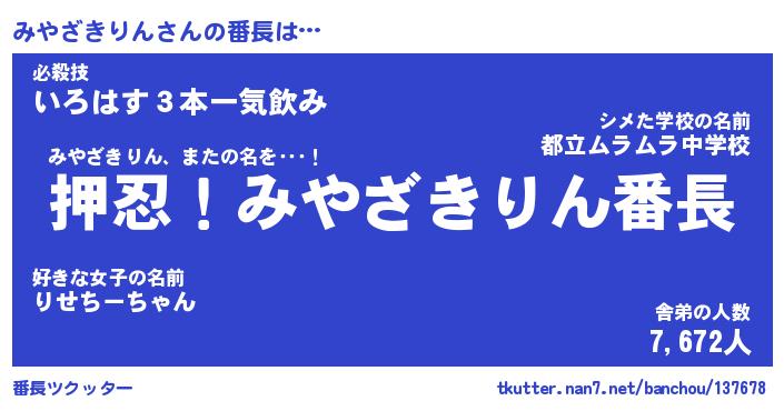 | ピコ太郎風あだ名 | 『ミコ二郎』『ピミ八郎』『ミヤ五郎』 |