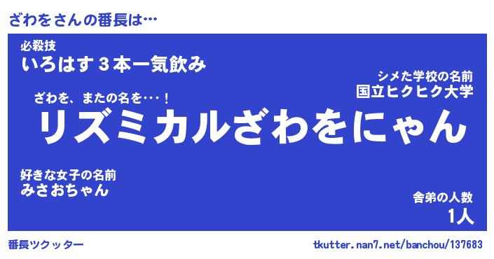 | 肩書あだ名 | 『ざわを店長』『ざわを総理大臣』 |