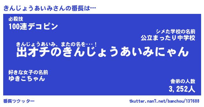 | ピコ太郎風あだ名 | 『キコ四郎』『ピキ二郎』『キン一郎』 |