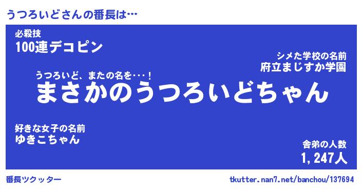 | ポケモン風あだ名 | 『ウツチュウ』『ウツロダネ』 |