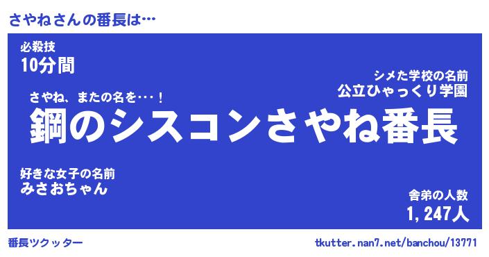 | 肩書あだ名 | 『さやね店長』『さやね国家主席』 |