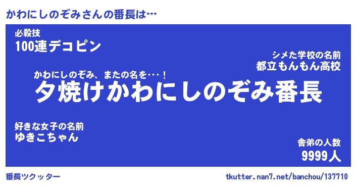 | ヒーロー風カッコイイあだ名 | 『スーパーカワニシノゾミ』 |