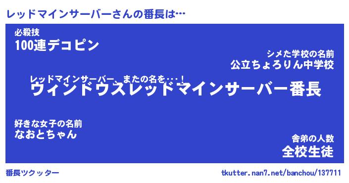 | ヒーロー風カッコイイあだ名 | 『スーパーレッドマインサーバー』 |