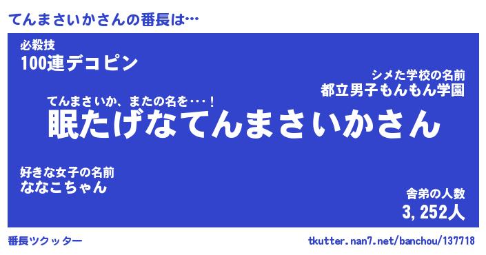 | ポケモン風あだ名 | 『テンチュウ』『テンマダネ』 |