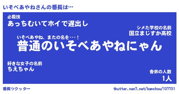 | 意味不明あだ名 | 『ペロリンいそべあやね』 |
