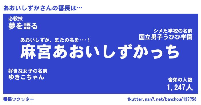 | 肩書あだ名 | 『あおいしずか御曹司』 |