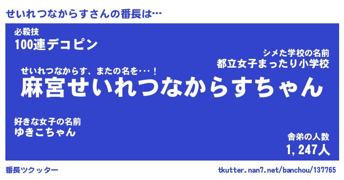 | 2回繰り返すあだ名 | 『せいせい』『せせいい』『あんあん』 |