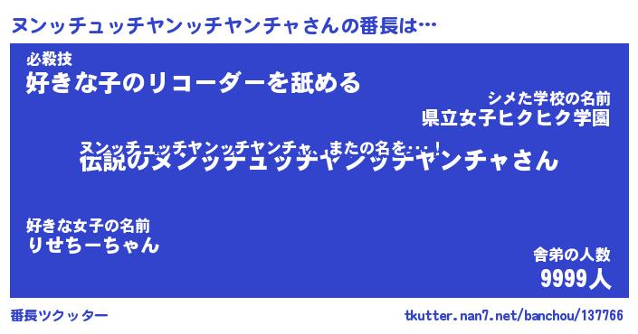 | 伝説のあだ名 | 『伝説のスナイパーヌンッチュッチヤンッチヤンチャ』 |