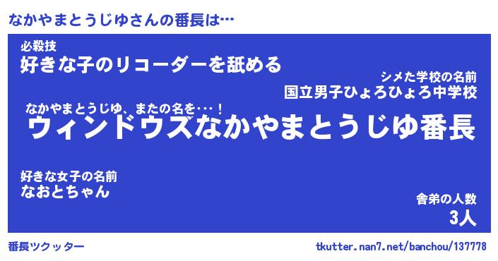 | 男性向けラノベタイトル風あだ名 | 『なかやまとうじゆの憂鬱』 |