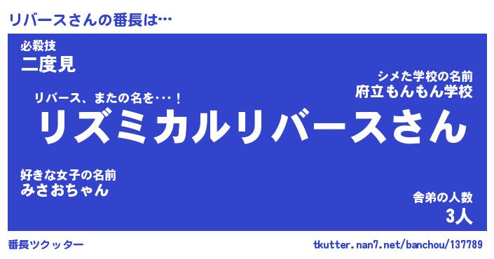 | ファンタジー風あだ名 | 『リバフェル』『エターナルリバースー』 |