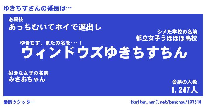 | 意味不明あだ名 | 『ペロリンゆきちす』『永久保存ゆきちす』 |