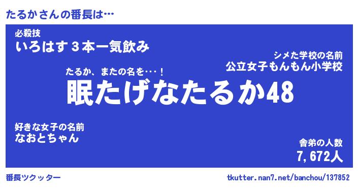 | 肩書あだ名 | 『たるかCEO』『たるか国家主席』 |