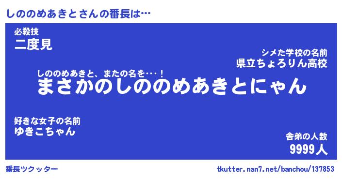| 男性向けラノベタイトル風あだ名 | 『しののめあきとの憂鬱』 |