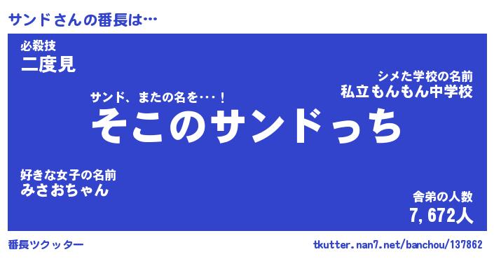 | 意味不明あだ名 | 『ペロリンサンド』『サンドフォーエバー』 |