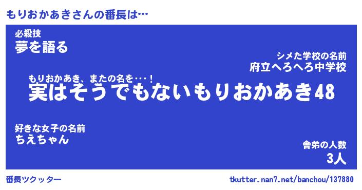 | 肩書あだ名 | 『もりおかあき御曹司』 |