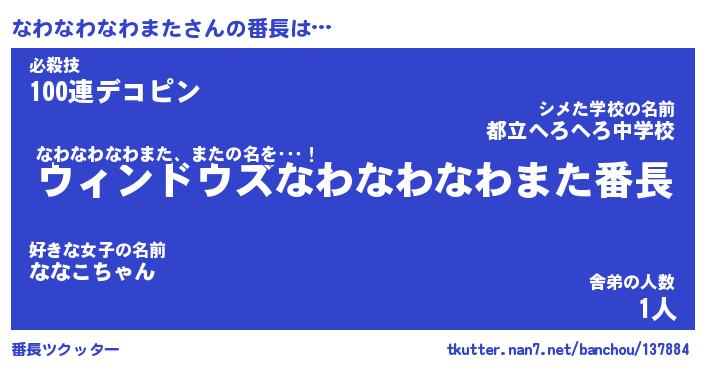 | ポケモン風あだ名 | 『ナワチュウ』『ナワナダネ』 |