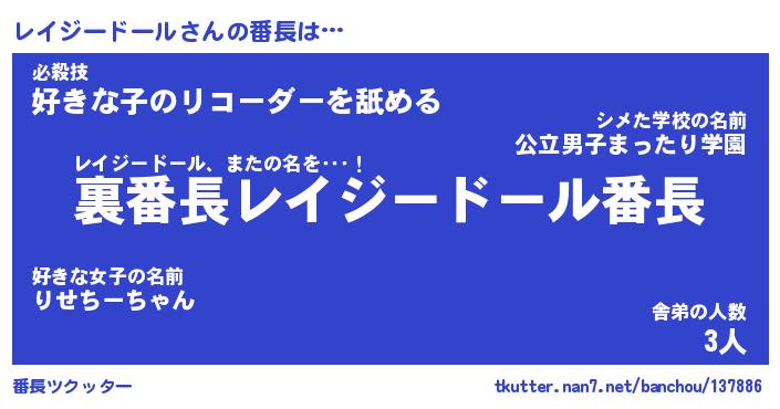 | ヘコむあだ名 | 『レイっふぃ~』『酢こんぶ』 |