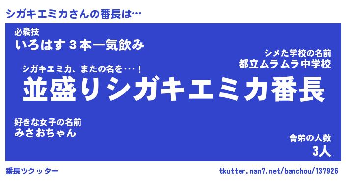 | 肩書あだ名 | 『シガキエミカCEO』『シガキエミカ大統領』 |